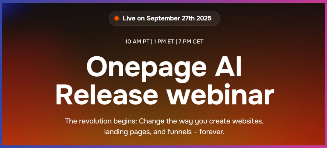 On September 27 at 7 p.m. CET, Onepage will host a major release webinar.