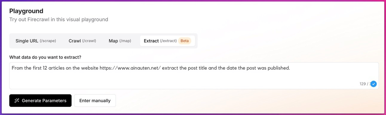 In the Playground, we then go to Extract (/extract) Beta: