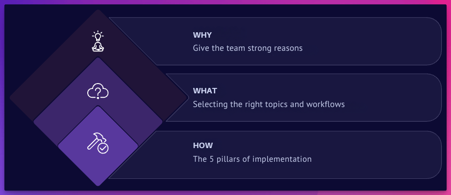 In the "What" section, we deal with which topics, processes, and workflows we want to tackle specifically. And, of course, what does NOT need to be supported by AI.