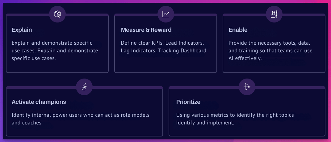 These are just a few examples of possible tactics that will encourage your employees to use AI more and better.