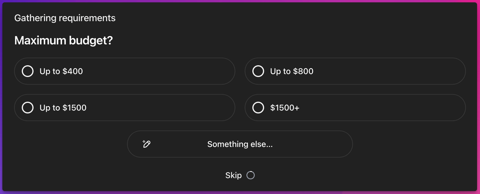 Once it has enough information and knows what you want, it gets to work: it searches through all the products and prepares a perfect evaluation for you. Pretty awesome.